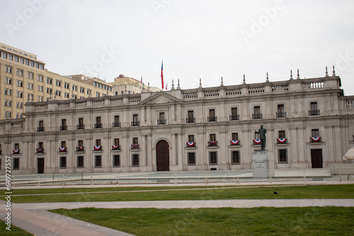 Naklejka premium Palacio de la Moneda one of the main tourist attractions in the tourist center of Santiago de Chile