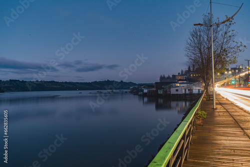 Obraz premium palafitos at sunset in chiloe