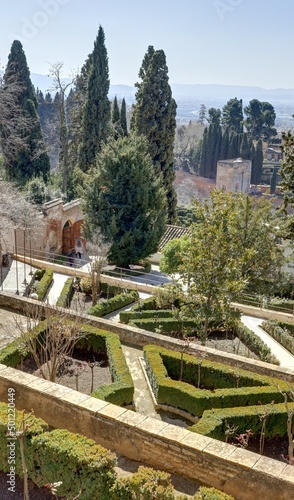 © Lotharingia, Fototapeta premium palais de l'Alhambra à Grenade et du palais de Generalife en Andalousie au sud de l'Espagne et quartier de l'Albayzin