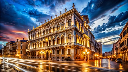 Fototapeta premium Palazzo Long Exposure Photography: Night Lights, Architecture, Italian Cityscape, Urban Exploration, Dramatic Lighting, Venice, Florence, Rome, Architectural Photography, Long Exposure Shot