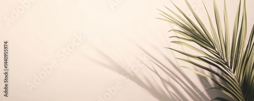 Fototapeta premium Pale backdrop with palm leaf shadows.