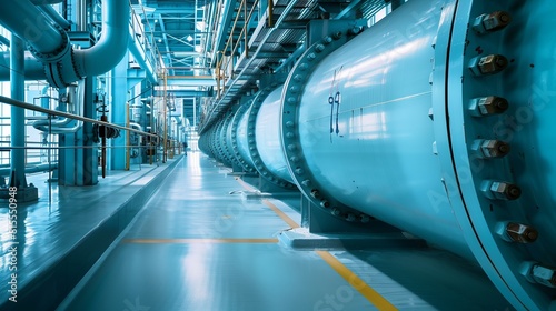 © Nazia, Fototapeta premium Pale Blue Pressure Vessel in a Chemical Plant, Capturing High-Strength Material Design