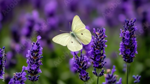 © arif, Naklejka premium Pale Butterfly in Lavender Field
