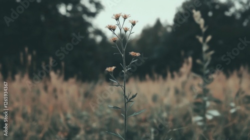 © musa, Fototapeta premium Pale Flowers in Field, Subtle Autumnal Colors, Peaceful Scene