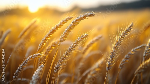 © Sang, Fototapeta premium Pale gold rye stalks sway gracefully in the wind across an open field