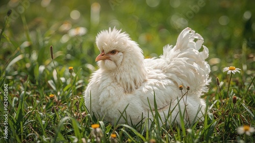 © AkuAku, Fototapeta premium Pale Hen Lounging in a Field