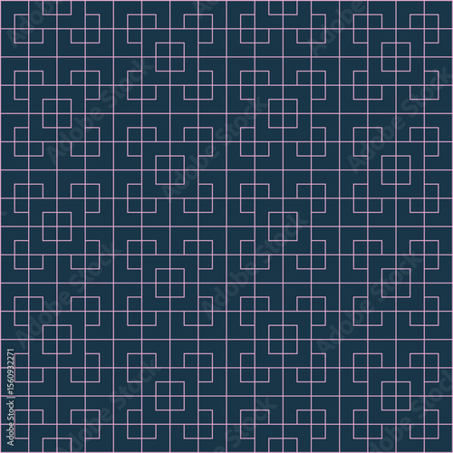 Fototapeta premium Pale pink grid pattern created from squares within squares on a dark blue backgroun
