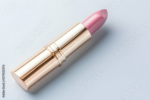 © Lailatul, Obraz premium Pale pink lipstick in gold tube on light background