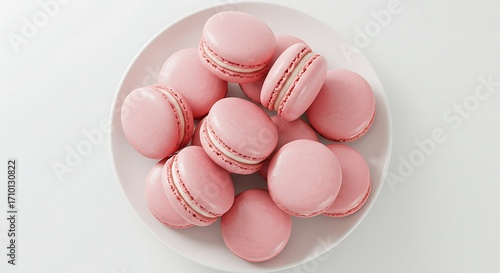 © Feb, Obraz premium Pale Pink Macarons on White Plate Overhead Sweet Treats