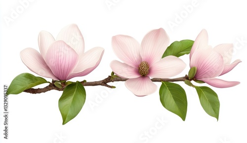© Kettisak, Fototapeta premium Pale Pink Magnolia Blossoms on Branch, White Background