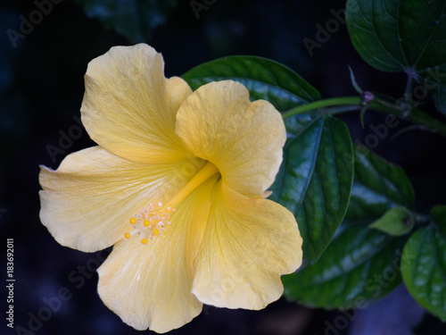 © Robert, Fototapeta premium Pale Yellow Hibiscus with Shrubbery