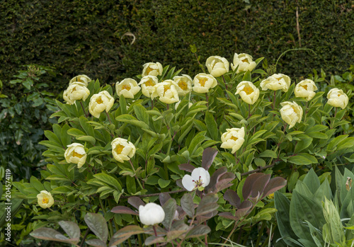 © Snapvision, Naklejka premium Pale yellow single peonies Spetchley Gardens Worcester
