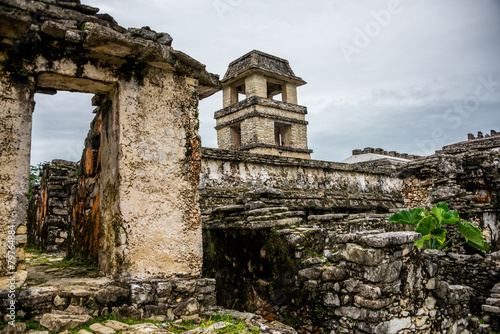 Naklejka premium Palenque Mayan City. Ruins in the Jungle, Chiapas, traveling thr
