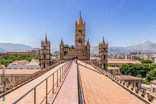 Naklejka premium Palermo, Italy. The roof of the cathedral. On the left, in the background,...