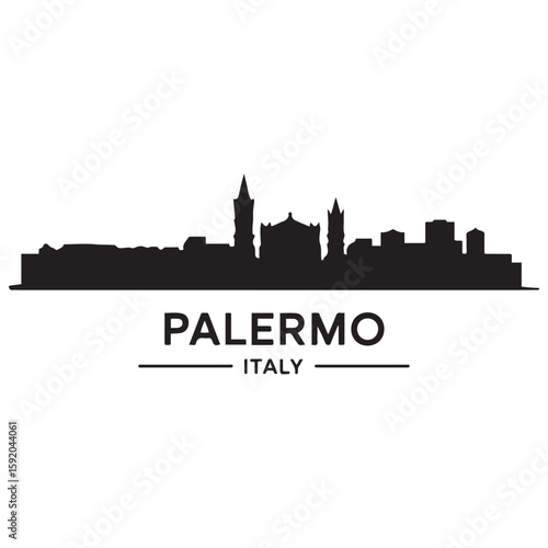 © firoz, Fototapeta premium Palermo skyline horizontal banner. Palermo, Italy. Vector template for your design. Vector black silhouette. with white background