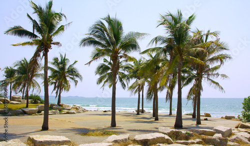 Fototapeta premium Palm and coconut trees on the beach at Rayong Thailand