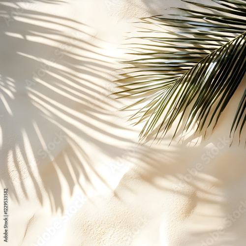 © PixelHD, Obraz premium Palm branch over sand with shadows