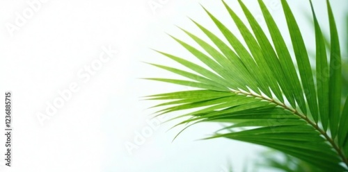© Sarayuth, Obraz premium Palm frond with delicate details on a white background, foliage, nature