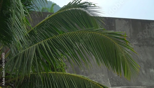 © Paypal, Fototapeta premium Palm fronds against a gray concrete wall