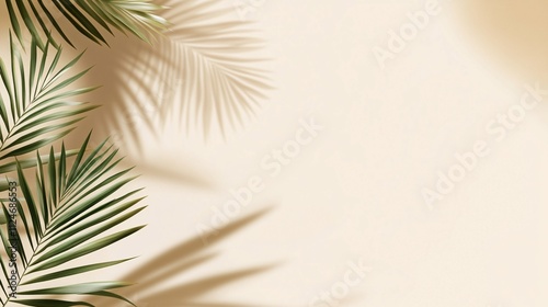Fototapeta premium Palm Fronds and Shadows on Beige Background