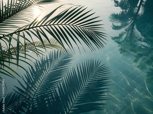 Naklejka premium Palm Fronds Over Water with Reflections Creating a Tropical Vibe