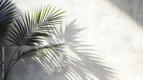 Obraz premium Palm Leaf and Shadow on a White Wall