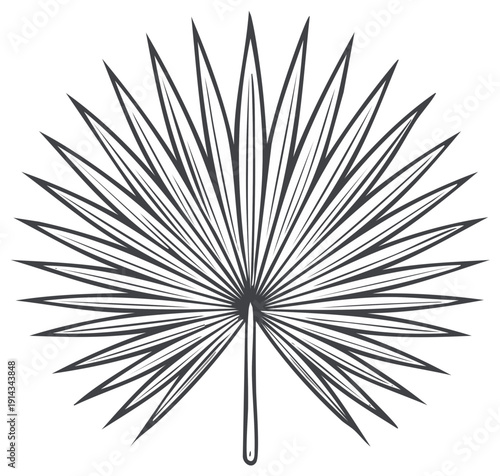 Fototapeta premium Palm leaf drawing in minimalistic style, vector illustration of tropical plant foliage design