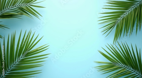 © Roman, Fototapeta premium Palm leaf frame against a blue background