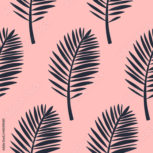 Obraz premium Palm leaf seamless pattern, carved pink gray tropical leaf, vector