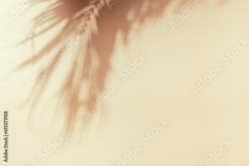 Obraz premium Palm leaf shadow on a beige wall. Minimal summer exotic concept with copy space