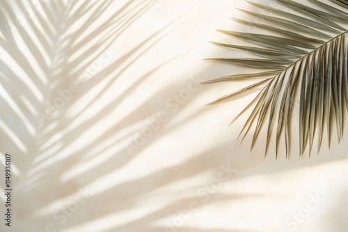 © ANZ studio, Obraz premium Palm leaf shadow on beige background. (1)