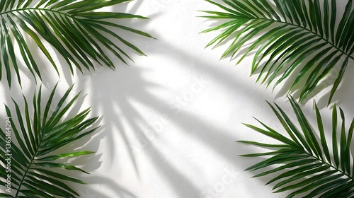 © Anusa, Obraz premium palm leaf shadow overlay effect on white background