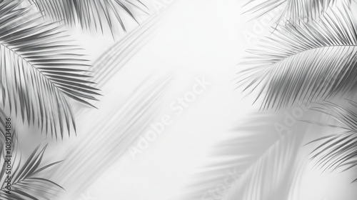 Obraz premium Palm leaf shadows cast on a white wall, creating a soft, abstract background...
