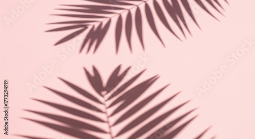 © Iswanto, Naklejka premium Palm leaf shadows on a pink background creating a tropical and minimalist aesthetic.
