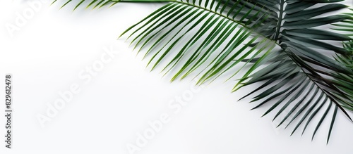 Obraz premium Palm leaves against a plain white backdrop provide copy space image