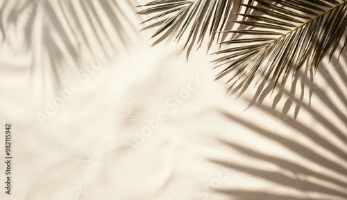 Obraz premium Palm leaves casting shadows on white sandy beach background
