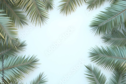 © Nur, Fototapeta premium Palm leaves frame a light blue background