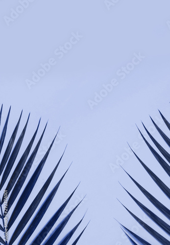 Fototapeta premium Palm leaves on colorful background with copy space.