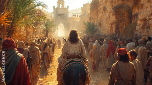 Fototapeta premium Palm Resurrection, Entry of the Lord into Jerusalem, Jesus Christ on a...