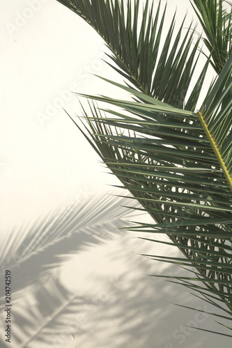 Obraz premium Palm shadow on white wall, abstract Majorca, Balearic islands, Spain.