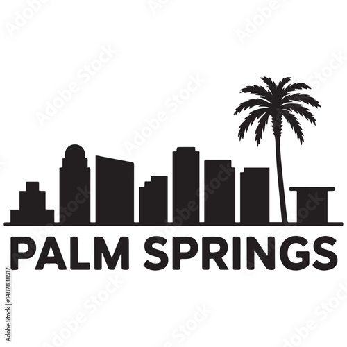 © firoz, Fototapeta premium Palm Springs, CA skyline silhouette. Black Palm Springs city design. Vector black silhouette. with white background
