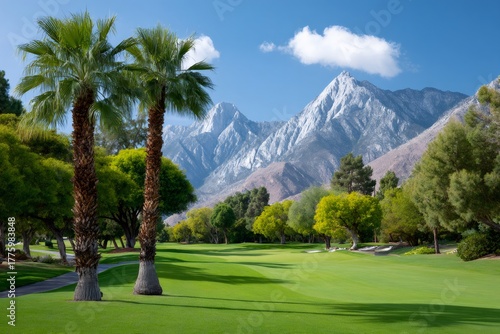 © kardaska, Naklejka premium Palm Springs golf course with San Jacinto mountains