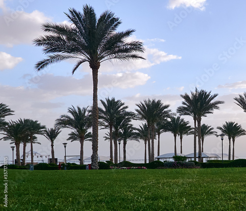 © Igor, Fototapeta premium palm tree growing against the blue sky