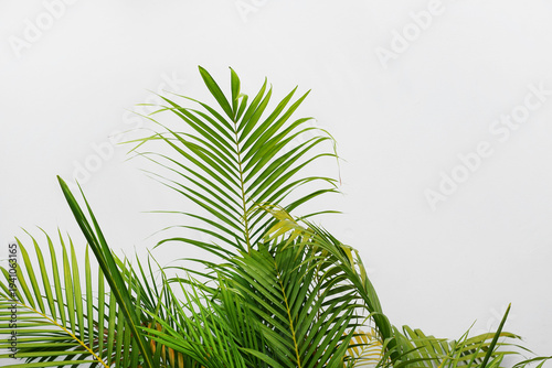 Fototapeta premium palm tree leaves and branches on white background, copy space