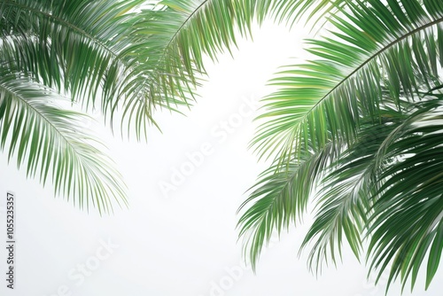 © Isuru, Fototapeta premium Palm tree leaves on white background.