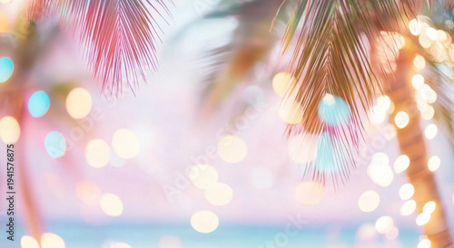 Obraz premium Palm tree leaves with bokeh lights, perfect for tropical holiday background