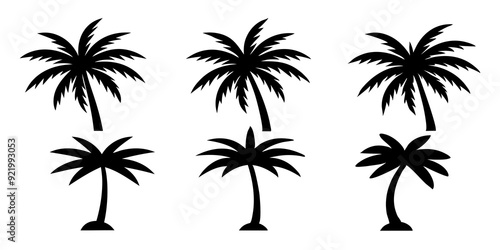 © bizboxdesigner, Obraz premium Palm tree logo icons set silhouette vector style illustration
