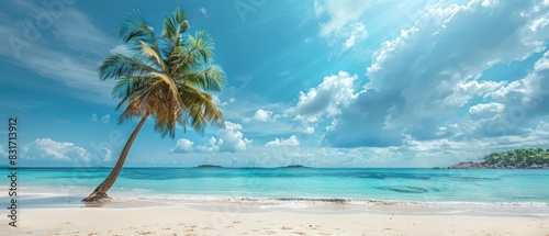 Fototapeta premium palm tree on tropical island beach wallpaper