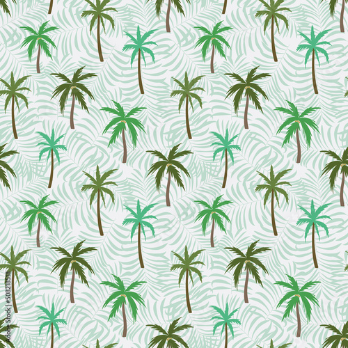 © Elinnet, Obraz premium Palm tree seamless vector pattern design background