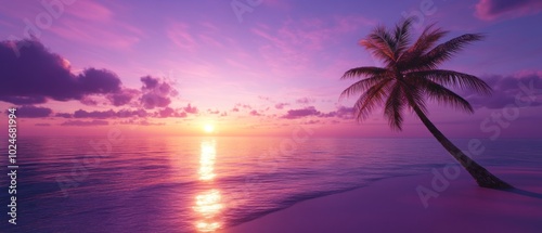 Naklejka premium Palm Tree Silhouette at Sunset on a Pink Beach